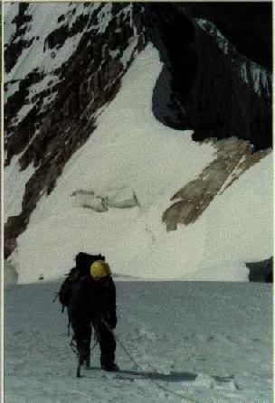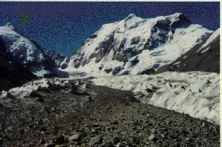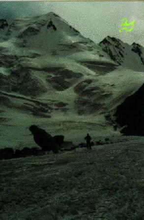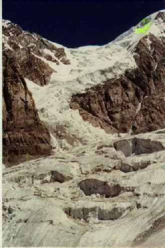 юг в Китай круто падает снежно-ледовый склон. В районе ледника