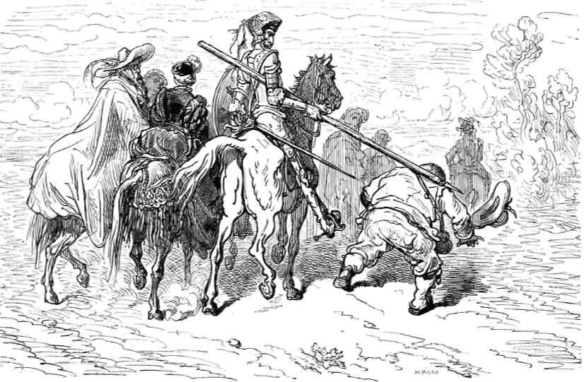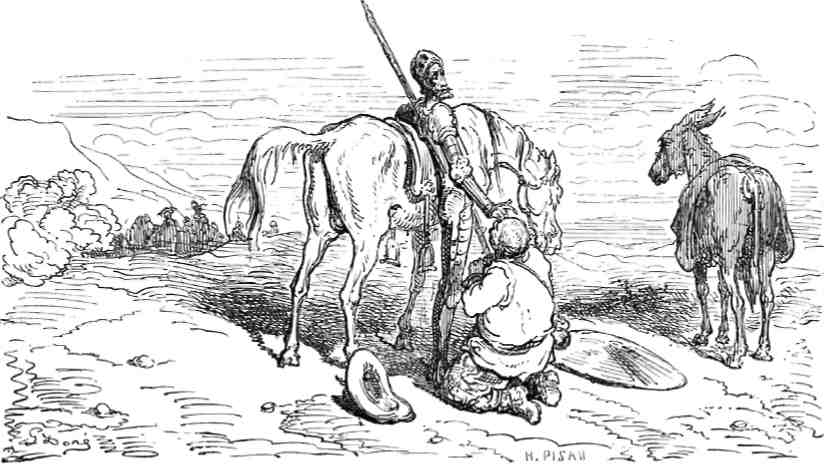 дворе со спутниками Дон Кихота