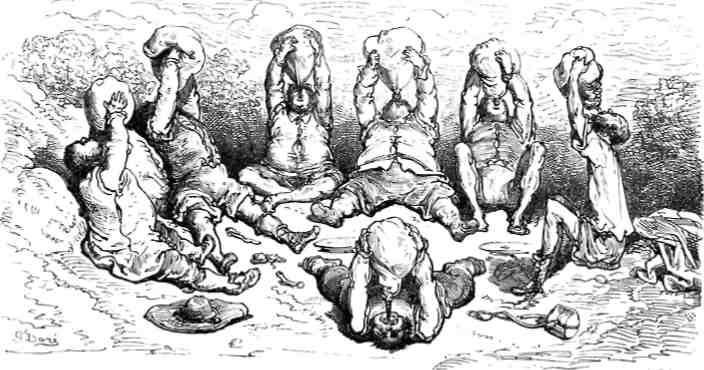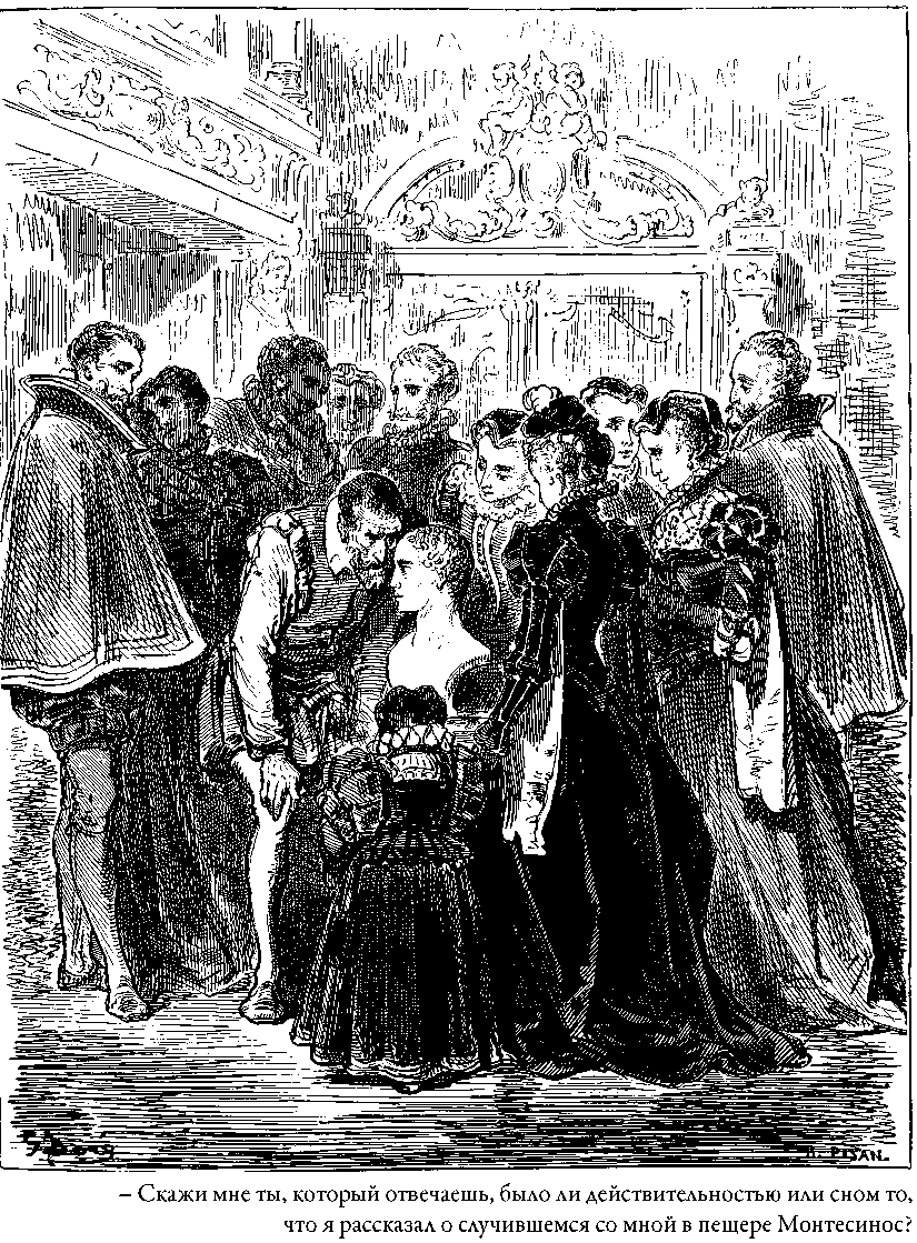 Кихот рассказал, будто он их видел в глубокой пещере Монтесинос, но