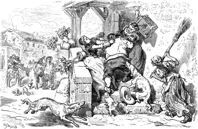 Пансой с ключницей и племянницей Дон Кихота, и о других забавных