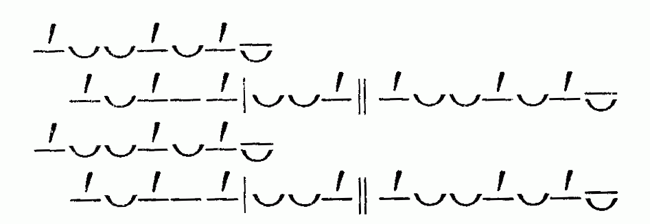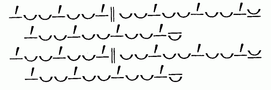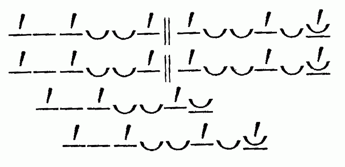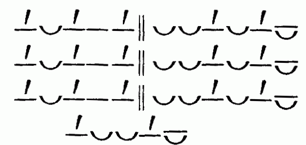 стопа в три музыкальных единицы (моры) сочетаются со стопами в четыре таких