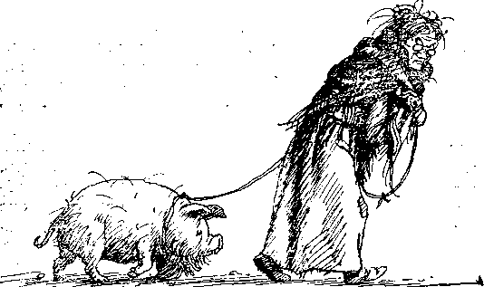 единственный поросенок с бородой. Вот какая колдунья! Она живет на улице