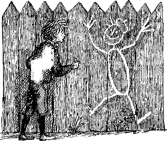 нарисовал мелком мальчишку на заборе. Но мальчишка получился не очень