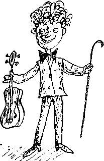 играет на скрипке, он не снимает носа.