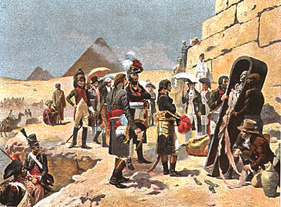 Насадив новый политический режим в завоеванной стране, Бонапарт стал готовиться к дальнейшему походу - к вторжению из Египта в Сирию. Ученых, которых он взял с собой из Франции, он решил в Сирию не брать, а оставить их в Египте. Бонапарт никогда не проявлял особо глубокого уважения к гениальным изысканиям своих ученых современников, но он великолепно сознавал, какую огромную пользу может принести ученый, если его направить на выполнение конкретных задач, выдвигаемых военными, политическими или экономическими обстоятельствами. С этой точки зрения он с большим сочувствием и вниманием относился и к своим ученым спутникам, которых взял с собой в эту экспедицию. Даже знаменитая его команда перед началом одного сражения с мамелюками: "Ослов и ученых на середину!" - означала именно желание обезопасить прежде всего наряду с драгоценнейшими в походе вьючными животными также и представителей науки; несколько неожиданное сопоставление слов получилось исключительно вследствие обычного военного лаконизма и необходимой краткости командной фразы. Нужно сказать, что в истории египтологии поход Бонапарта сыграл колоссальную роль. С ним приехали ученые, которые впервые, можно сказать, открыли для науки эту древнейшую страну человеческой цивилизации.