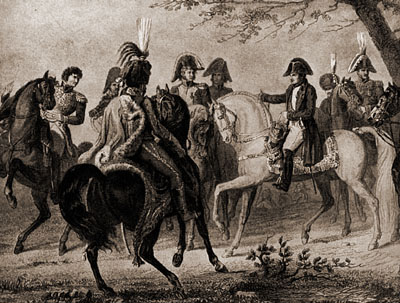 Император Франц и Александр бежали с поля битвы еще задолго до окончательной катастрофы Их свита бежала врассыпную, бросив обоих монархов по дороге, и монархи тоже убежали с поля сражения и быстро разлучились друг с другом, унесенные лошадьми в разные стороны.
