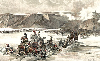 Наполеон лично руководил сражением с начала до конца: почти все его маршалы были налицо. Поражение русских и австрийцев определилось уже в первые утренние часы, но все-таки не погибла бы русская армия так страшно, если бы русские генералы не попали в ту ловушку, которую измыслил и осуществил Наполеон: он угадал, что русские и австрийцы будут стараться отрезать его от дороги к Вене и от Дуная, чтобы окружить или загнать к северу, в горы, и именно поэтому он как бы оставил без прикрытия и защиты эту часть своего расположения, отодвигая преднамеренно свой левый фланг. Когда русские туда пошли, он их раздавил массой своих войск, захвативших Праценские высоты, прижав русских к линии полузамерзших прудов. В прудах потонули или были уничтожены французской картечью целые полки, другие сдались в плен. Русские кавалергарды были истреблены почти полностью еще в разгаре битвы, после жестокой схватки с конными гренадерами наполеоновской гвардии. Маршалы изумлялись храбрости русских солдат, но и не меньше абсурдному поведению и полному военному невежеству, растерянности и бездарности русских генералов, кроме Кутузова. Они особенно поражены были, например, тем, что командующий левым крылом русских войск Буксгевден, имея 29 батальонов пехоты и 22 эскадрона кавалерии, вместо того чтобы помочь погибавшей русской армии, все время битвы провозился около третьестепенного пункта боя, где его часами удерживал ничтожный французский отряд. А когда Буксгевден, наконец, догадался начать отход, то сделал это так поздно и так неискусно, что несколько тысяч из его корпуса были отброшены к прудам и здесь потонули, так как Наполеон, заметив это движение, приказал бить ядрами в лед. Остальные были взяты в плен.