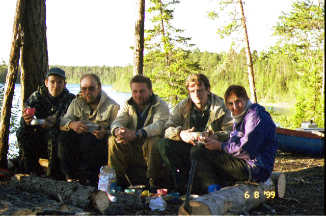 "На бугре" стояла одна из групп-попутчиц, получившая по возрастному принципу условное обозначение "комсомольцы". 6 юношей и 4 девушки, "Таймень", 2 КНБ "Мурена", 3 самодельных стеклопластиковых каяка и один полиэтиленовый "Инвайдер".