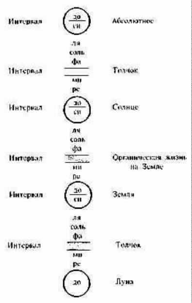 Изучение человека идет параллельно изучению мира. -- За Законом Трех следует другой фундаментальный закон вселенной. -- Закон Семи, или Закон Октав. -- Непостоянство вибраций. -- Необходимость дополнительных толчков. -- Что происходит при отсутствии дополнительных толчков. -- Октавы. -- Гамма семи тонов. -- Закон интервалов. -- Для того, чтобы делать, необходимо уметь контролировать добавочные толчки. -- Внутренние октавы. -- Органическая жизнь занимает место "интервала". -- Влияние планет. -- Боковая октава coль -- дo. -- Значение нот ля, соль, фа. -- Смысл нот дo и си. -- Значение нот ми и ре. -- Роль органической жизни в изменении земной поверхности.